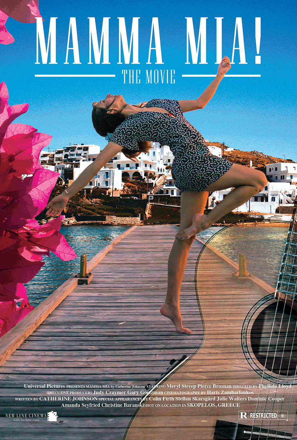 For this project, I recreated the Mamma Mia! poster using Photoshop and a seamless collage of six different images. The design emphasizes the musical’s playful energy with a dancing figure, guitar elements, and a Greek landscape backdrop. Bright pink native flowers add a vibrant touch while paying homage to the original poster.